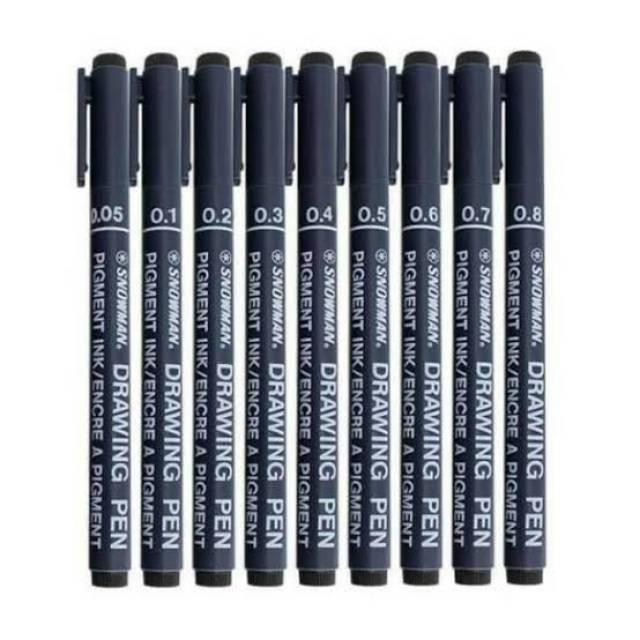 Drawing Pan dari merk snowman tersedia barbagai ukuran dari 0,1 sampai 0,8... tanyakan ukuran terlebih dahulu kepada admin sebelum pesan... harga sama semua dr uk 0,1 sampai 0,8