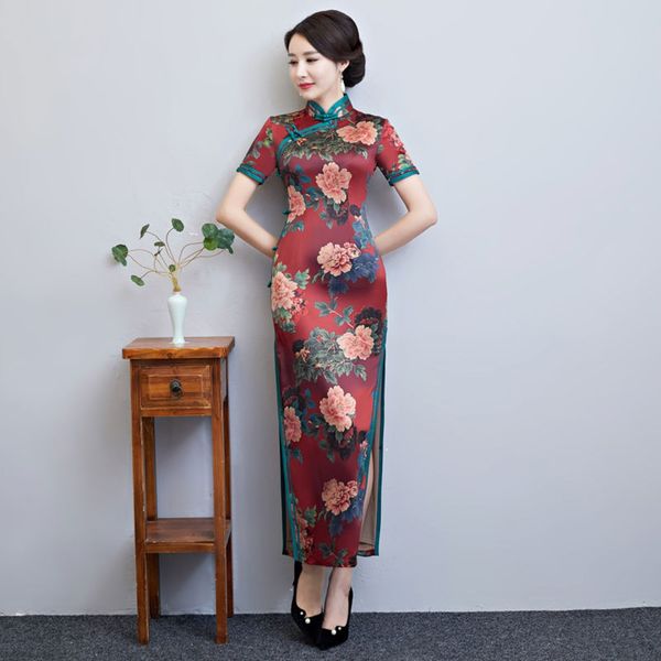 spring and summer new skirt skirtshort sleeve long cheongsam xiangyunsha silk wide brim double layer cheongsam skirt fhg1o, Black;gray