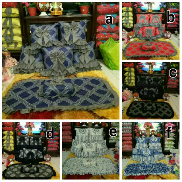 1 set sarung bantal kursi terdiri dari 5 sarung bantal ukuran 40x40 cm..taplak meja tamu 50x100 cm..sarung tissu..