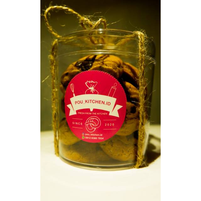 Kue kering dengan tekstur soft dengan toping choco chips dan dark chocolate.