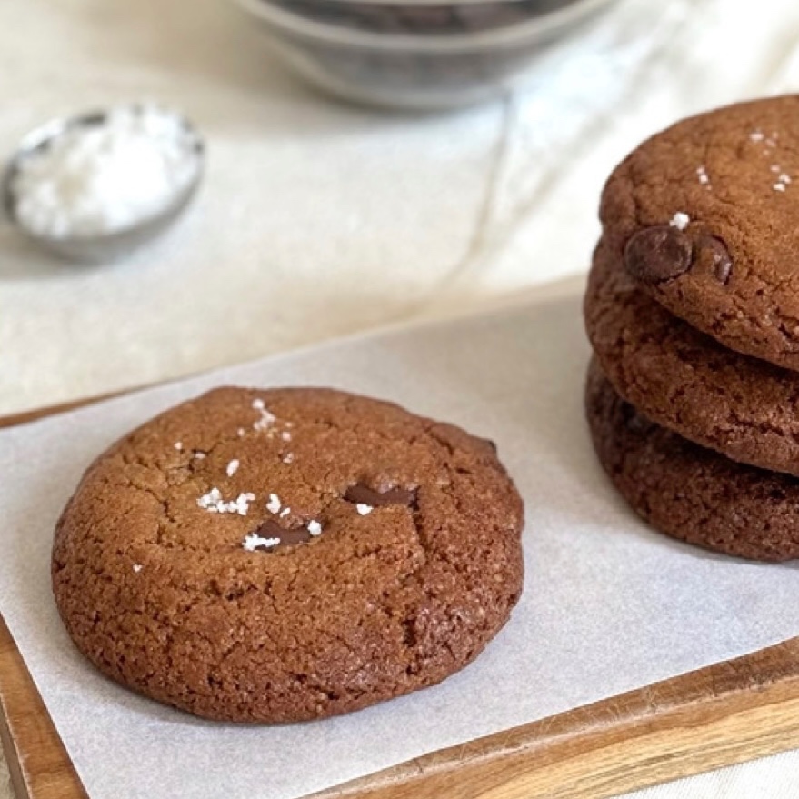 Double dark chocolate chip cookies with sea salt