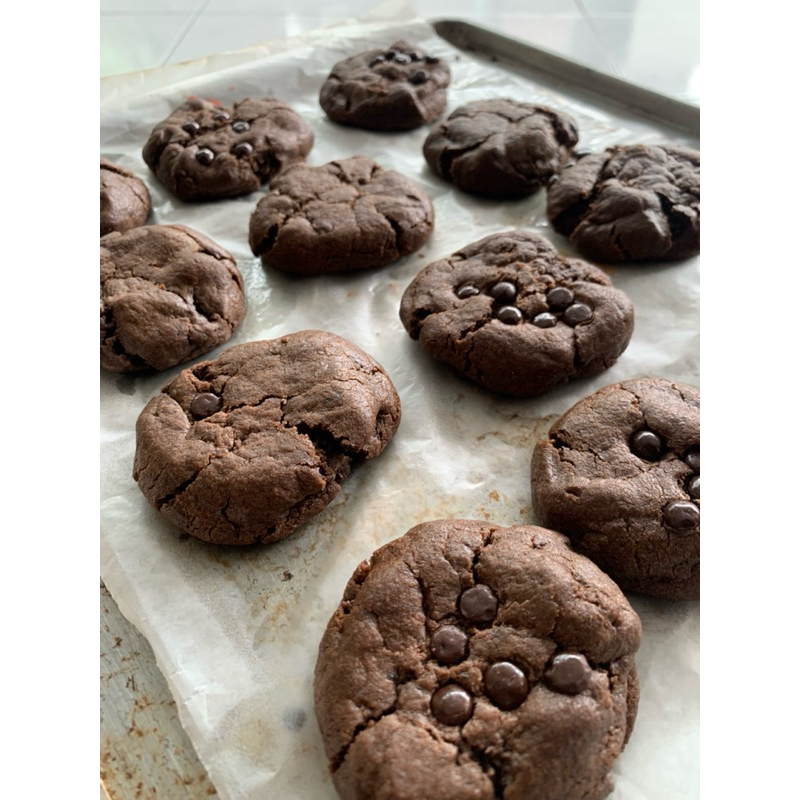 Sot Cookies dengan tekstur garing di luar dan lembut didalam. Perpaduan dark cokelat dan choco chip, dengan full butter serta brown sugar yang berkualitas membuat rasa semakin lezat.