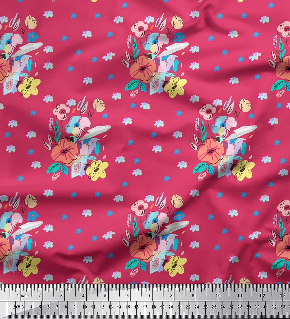 Soimoi Розовая японская креп-сатиновая ткань с художественным цветочным принтом, ткань на метр 42 дюйма 42 Inch Wide - Japan Crepe Satin розовый