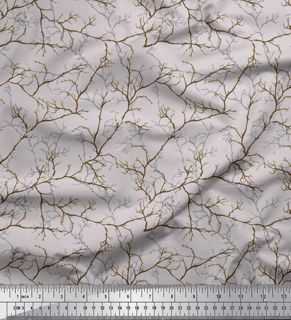 Soimoi серая японская креп-атласная ткань сухие ветки с принтом дерева ткань для рукоделия на метр 42 дюйма 42 Inch Wide - Poly Crepe серый