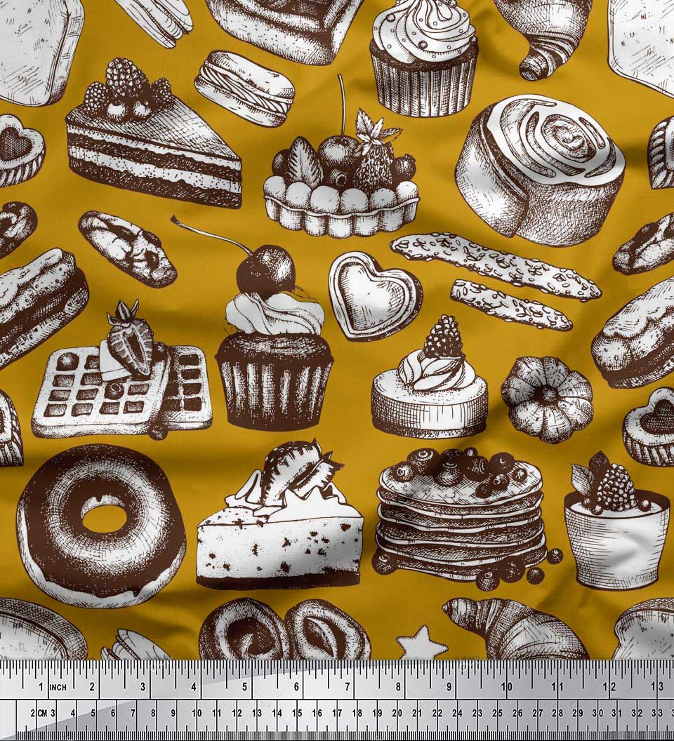 Soimoi Japan Crepe Satin Ткань для кексов, пончиков и печенья с пищевым принтом на метр 42 дюйма 42 Inch Wide - Poly Crepe светло-серый