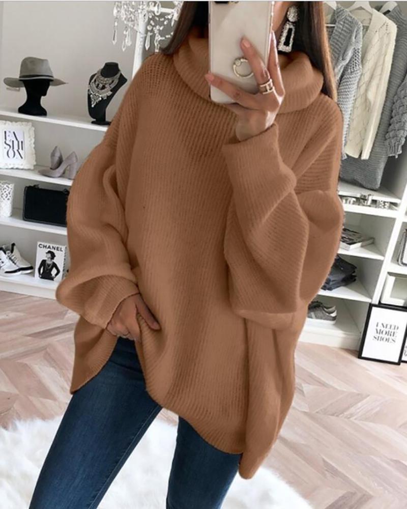 Solid High Neck Long Sleeve Ribbed Sweater