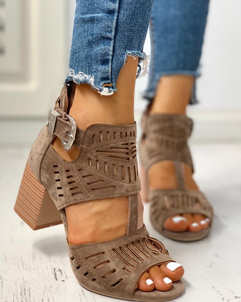 Solid Hollow Out Chunky Sandals, Brown