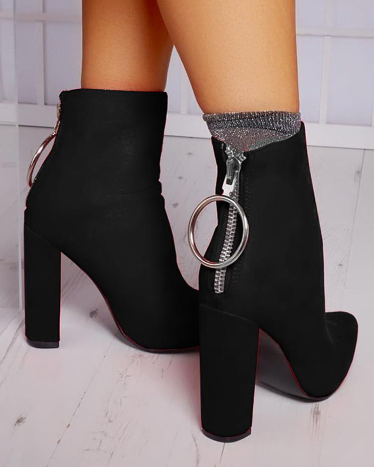 Solid Pointed Toe Zipper Back Boots, Black