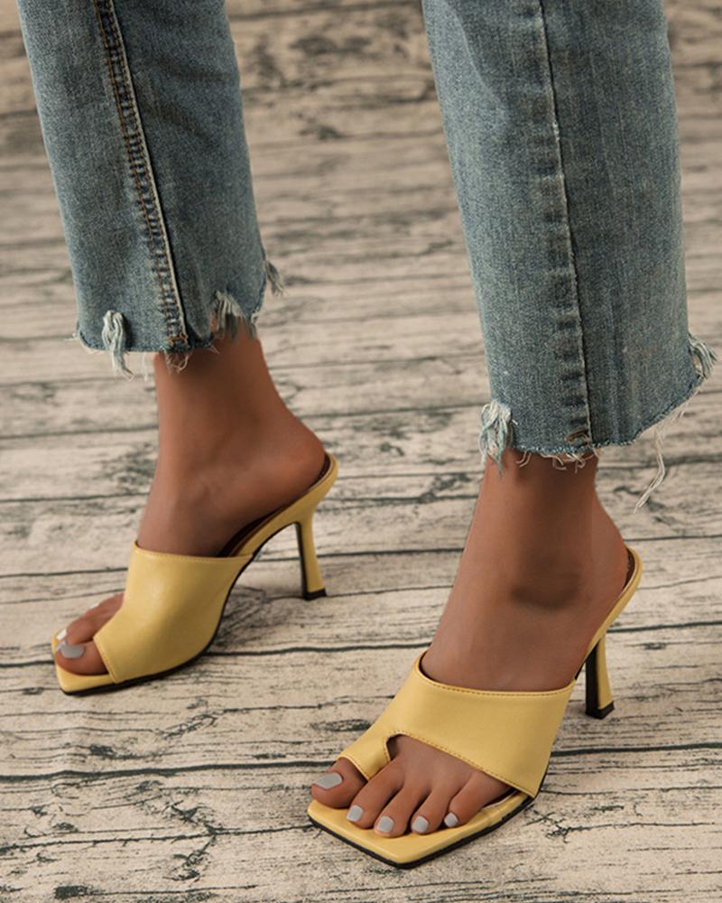 Solid Post-toe Sqaure-toe High Heel Sandals, Yellow