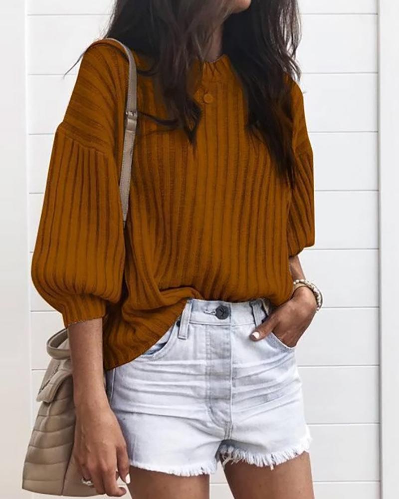 Solid Ribbed Round Neck Sweater