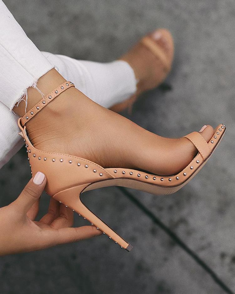 Solid Rivet Embellished Two Part Thin Heeled Sandals, Brown