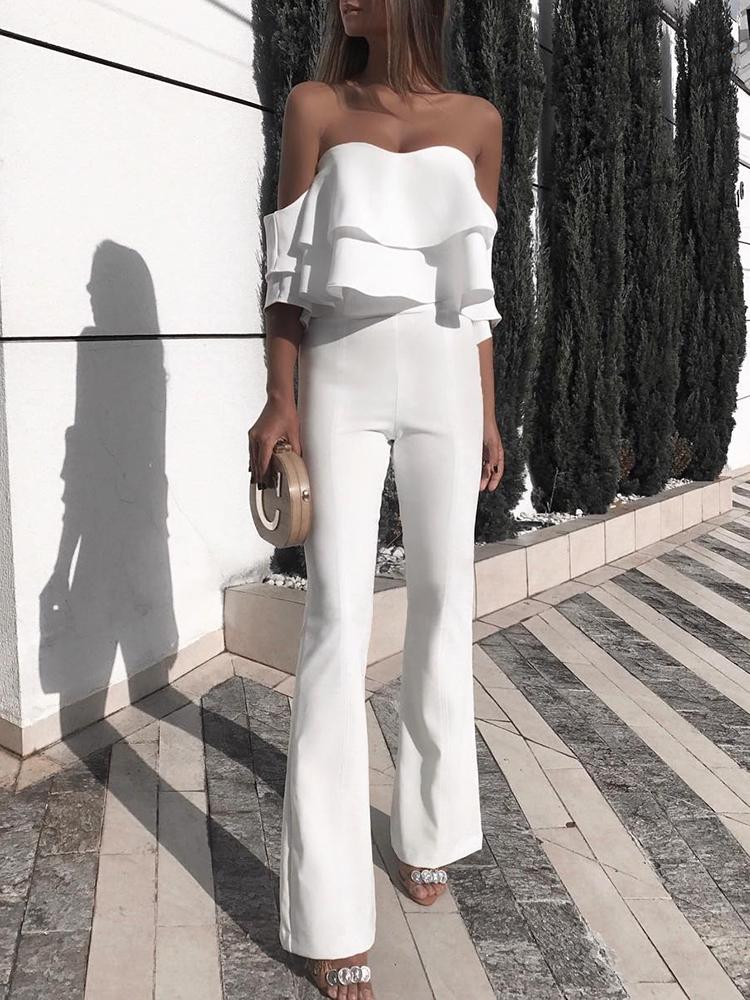 Solid Ruffled Design Off Shoulder Jumpsuit