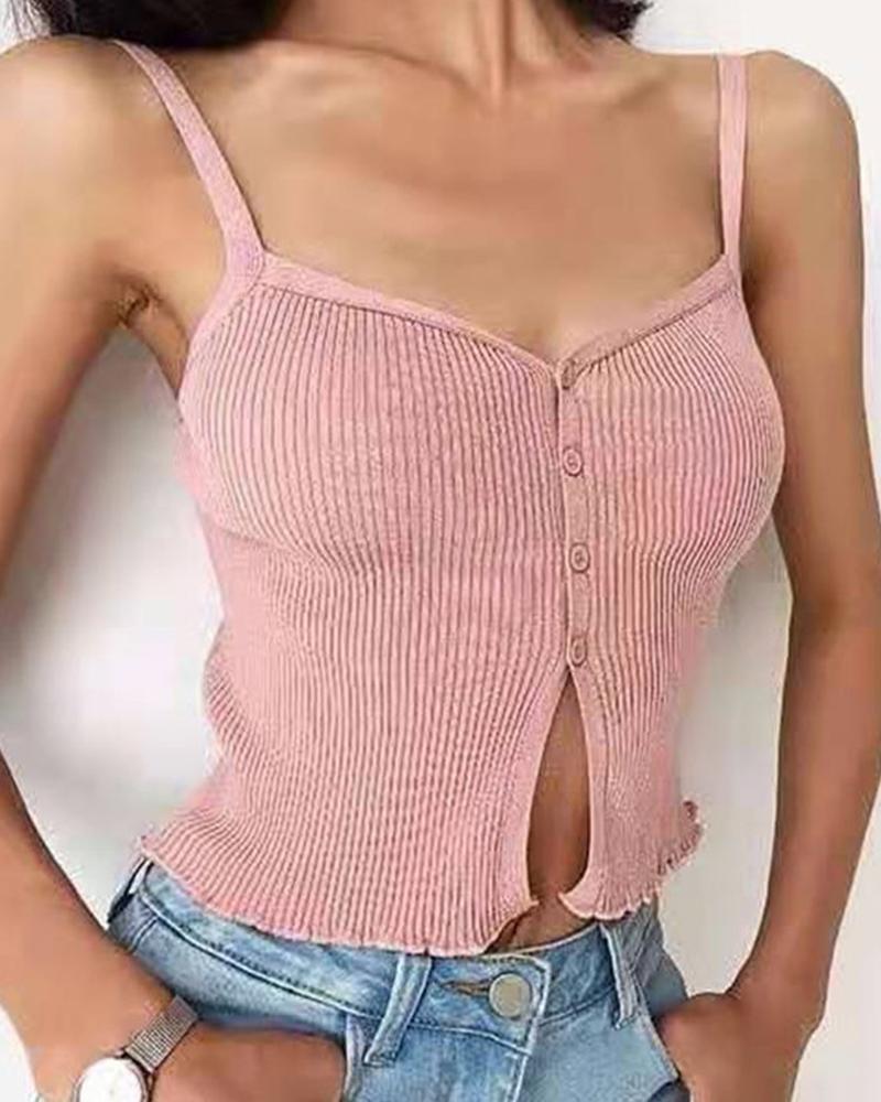 Solid Skinny Strap Button-up Tanks, Pink