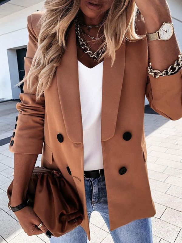 blazers,solid color double-breasted button suit