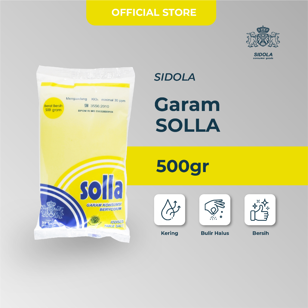 Garam konsumsi Solla memiliki butiran garam yang relatif lebih kasar. Walaupun memiliki butiran lebih kasar dan harga lebih ekonomis, namun kualitas Garam Solla sangat terjaga. Terbukti dari warnanya yang putih, kering, tidak mengandung kotoran, dan mengandung kadar iodium yang sesuai dengan peraturan pemerintah. Garam Konsumsi Solla memenuhi syarat mutu SNI yang telah ditetapkan oleh pemerintah dan telah mendapat sertifikasi Halal dari MUI.