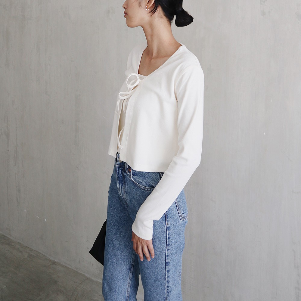 Our Sooji Set is made from premium rib knit material. Consists of a tank top and a cardigan.