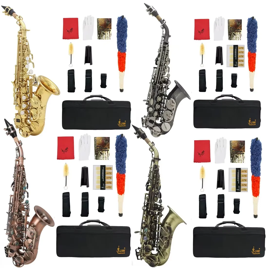 Soprano Saxophone Brass Golden Carve Pattern Sax Pearl White Shell Buttons Mouthpiece Reeds Neck Wind Instrument Accessories