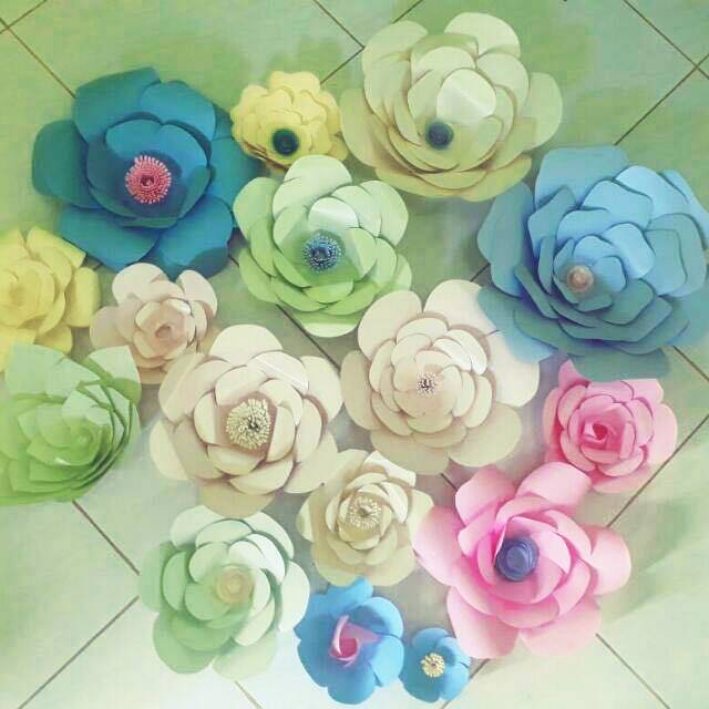 Paper flower dr bahan berkualitas ada banyak variasi warna,dan ukuran bisa custom,dr ukuran 8cm sampai paling besar 15cm.