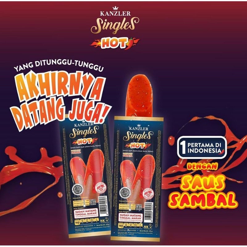 Sosis Kanzler Singles terbuat dari daging premium pilihan sehingga pada daging lebih terasa dan menghasilkan tekstur yang lembut. Dengan kulit yang terbuat dari kolagen Halal sehingga tidak perlu dikupas dan memberikan sensasi garing pada saat digigit.