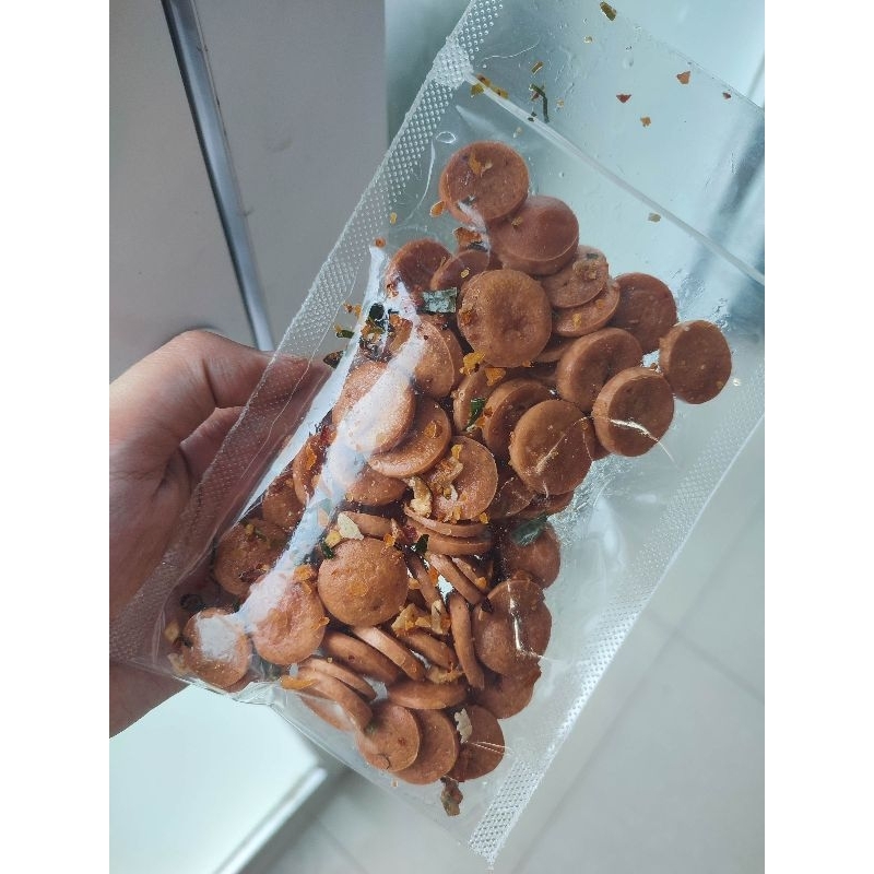 sosreng/sosis goreng ,dibuat dari sosis ayam asli,