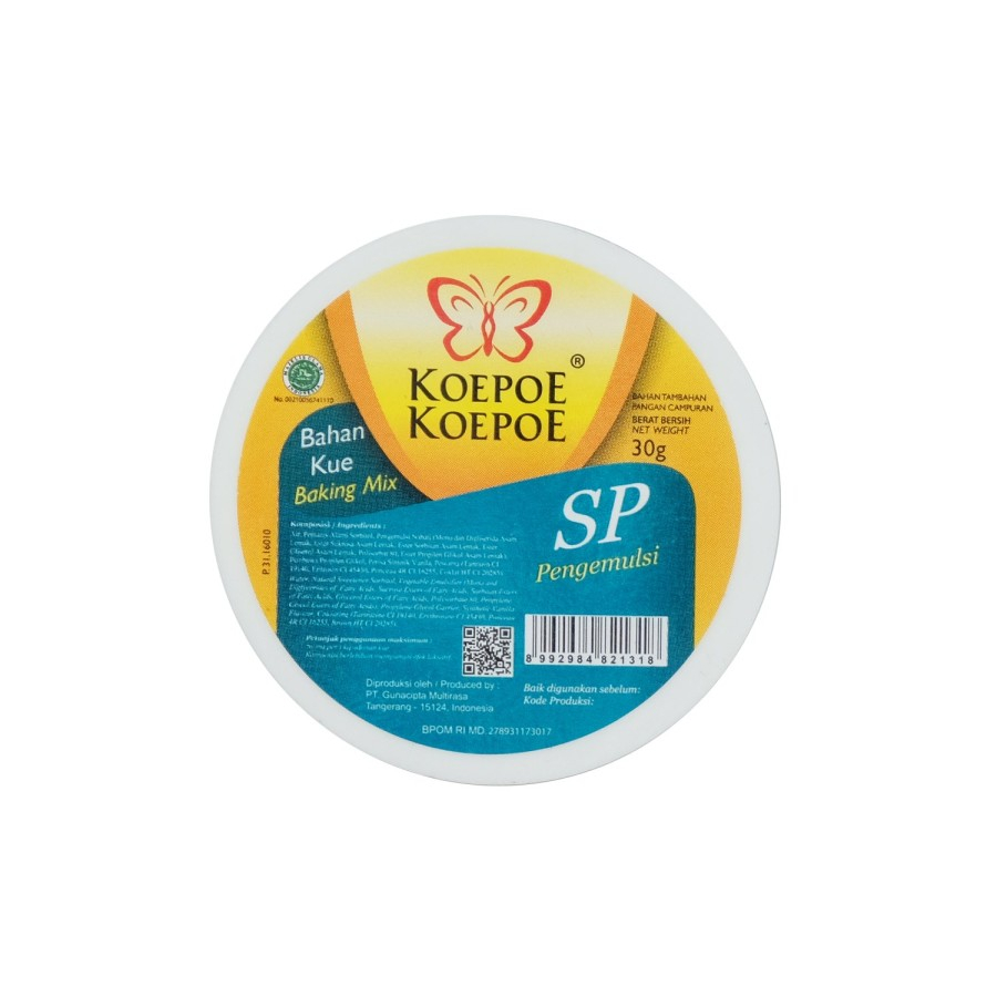 SP Koepoe Koepoe digunakan sebagai pengikat, pelembut dan juga pengembang kue. Dibuat dari bahan pilihan yang bermutu tinggi untuk kesempurnaan kue anda.