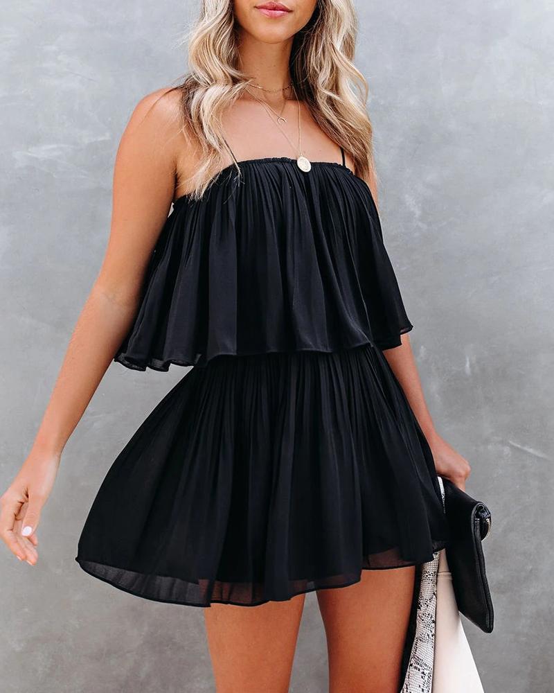 Spaghetti Strap Layered Ruffles Ruched Romper, Black