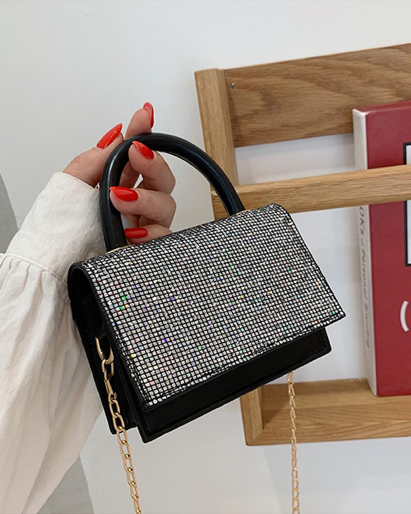 Sparkling Rhinestone Decor Chain Strap Mini Shoulder Bag, Silver