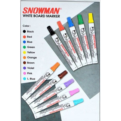 Snowman spidol white board marker BG-12 adalah spidol dengan tinta yang dapat dihapus dengan mudah, biasanya dipakai untuk menulis di papan white board. Spidol ini dapat diisi ulang dengan Refill Snowman berkode WBI-20