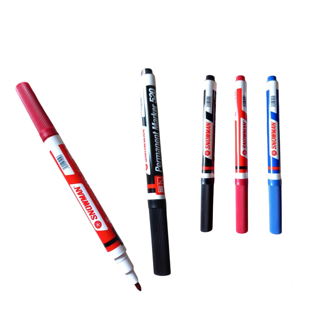 Spidol Permanen dari Snowman dengan ukuran Barrel ini memiliki ujung Spidol Fine Tip (Seukuran Spidol Satuan Snowman). Cocok digunakan untuk keperluan penulisan di bidang / media ukuran kecil ke sedang. Tulisannya cepat kering setelah ditulis, multiguna. Tinta permanen tidak luntur terhadap gesekan tangan dan kualitas waterproof