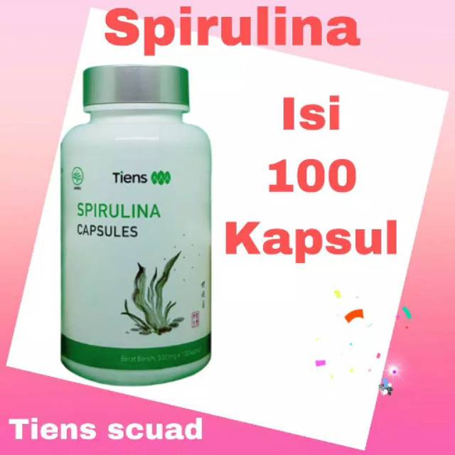 - Spirulina Tiens juga memiliki kandungan berupa betakaroten, zat besi, kalsium, asam linoleic, fosfor, asam nucleic RNA &