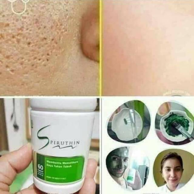 Spiruthin kandungannya Spirulina asli lho.. Spirulina nya aman bgt krn ada alumunium foil nya dibagian atas tutupnya.. Artinya spirulina ini tidak mengandung zat kimia berbahaya.. Banyak bgt manfaatnya dan terutama utk anak2 membantu kecerdasan otak dan pertumbuhan saraf sensorik dan motorik nya..Spiruthin ini bisa jadi masker wajah lho..