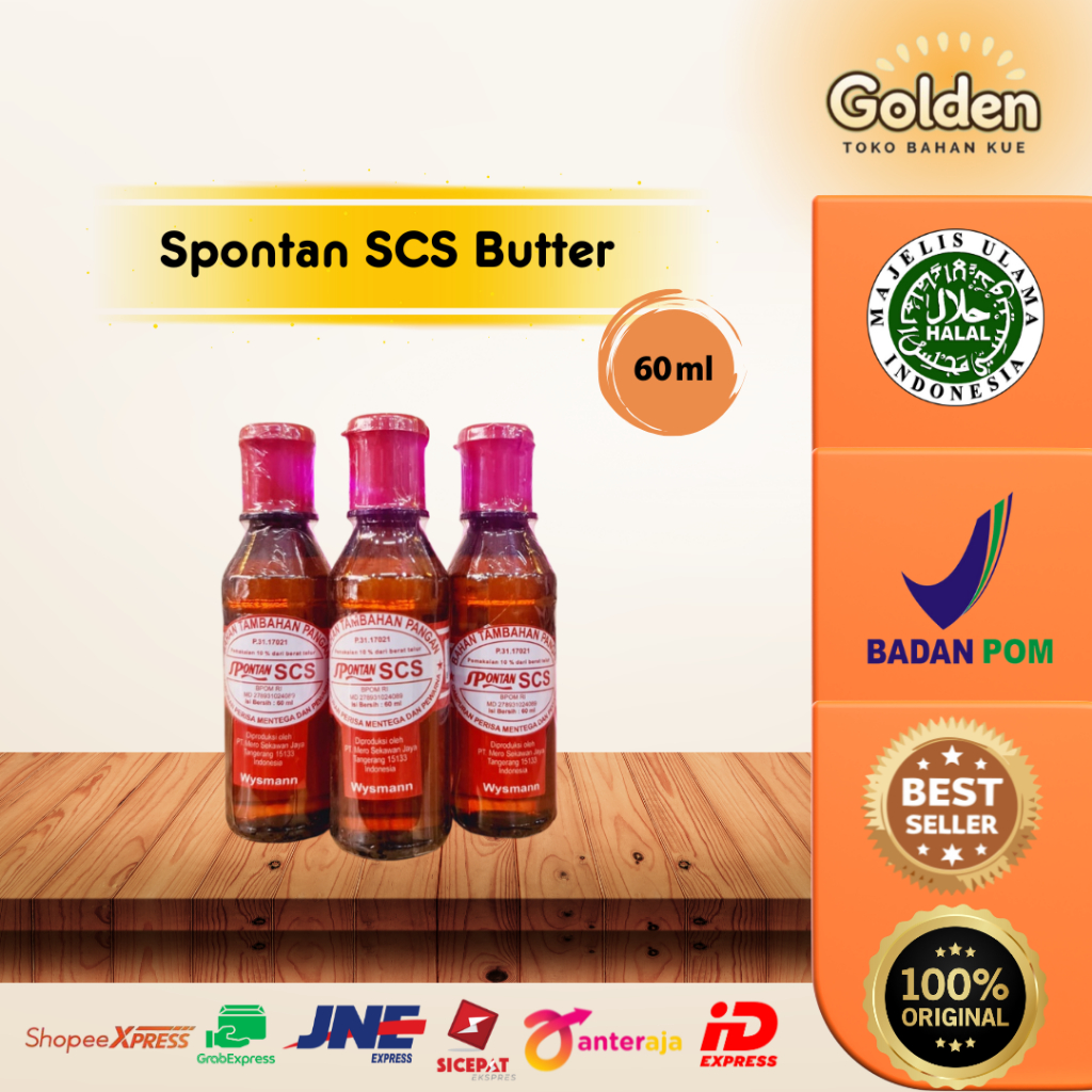 Spontan SCS Butter adalah ekstrak mentega pekat dalam bentuk cair, dirancang untuk memberikan aroma dan cita rasa mentega asli pada kue, roti, pastry, dan olahan makanan tanpa menambah lemak padat. Produk ini mudah digunakan dan praktis, cocok untuk berbagai kebutuhan kuliner.
