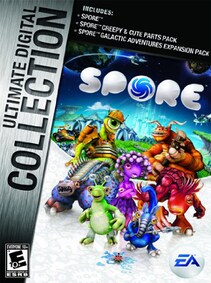 Spore Ultimate Digital Collection includes:1. SPORE2. SPORE GALACTIC ADVENTURES3. SPORE CREEPY AND CUTE Parts PackSPOREBe the architect of your own universe with Spore, an exciting single-player adventure available for download to your PC. Will you be a bloodthirsty carnivore destined to crush your competitors, or a gentle herbivore seeking out stronger allies to enforce your quiet way of life?Experience unparalleled dangers as you hunt for food and struggle to evolve in this thrilling game of strategy and survival. You’ll lay the groundwork for your creature’s future in the Creature design stage of the game: the evolution interface allows you to choose every aspect of your race’s physical shape as well as its social bent and mission in life.Then the real work begins, as you move from basest animalistic needs to those of a social creature with tribes — and eventually a civilization. The choices your tribe makes will align you with one of three social paths for your subjects: religious, commerce, and war-mongering. These decisions will lead your civilization into the far reaches of space, where you must struggle to colonize new planets as other races try to destroy you.Share your creations with your friends at the online Spore site, where you can browse the community and download everything from creatures to spaceships. The more you share, the more unique your worlds will become. Exchange your creations with millions of other players, and marvel at a world of your own making.SPORE GALACTIC ADVENTURESSpore takes off to conquer the universe with the PC download of Spore Galactic Adventures. The fantastic tools from the original Spore now span the galaxy. Teleport landing parties to new environments and interact with civilizations just on the brink of advancement. Complete missions on the planet surface to level your captain, and purchase upgrades for your society, ship, or weaponry. Protect weaker groups to gain their appreciation, loyalty, and sometimes worship.Design your own epic quests with the Adventure Creator, and let your imagination run free with the Planet Creator. Customize entire planets with creatures from your Sporepedia, place and engineer villages, and terraform your atmosphere to suit your collection of creatures. Orchestrate how the world progresses by fine tuning your villagers’ interactions with others. Dig deeper than ever before into the world of a game designer.Share all your hard work with millions of other players at Spore.com. Find exciting new adventures and upload a few of your own. Let your game evolve as you discover new techniques that will keep you coming back to the Spore universe again and again. With Spore Galactic Adventures, the world is literally at your fingertips.SPORE CREEPY AND CUTE Parts PackDownload the Spore Creepy & Cute Parts Pack to your PC and stretch the limits of your imagination. Expand your evolutionary arsenal with more than 100 ways to take your Spore creature designs to the next level. Spend hours in the Creature Creator with increased design options. Invade your Sporepedia with cute and cuddly creatures, or create an evil empire of creepy insectoids or carnivorous monsters to scour your galaxy of life.Once you build your new collection of monsters and cuddly critters, you can “test drive” 24 animations to bring them all to life. Do the robot or the moonwalk, then flirt with a handsome blue thing over yonder. This expansion even features an innovative zombie walk, adding to the humorous, silly aspects of Spore.Share your world with your friends and millions of other Spore enthusiasts through your PC’s Internet connection. Exchange ideas, monsters, vehicles, and more via your Spore online portal. Download more than 150 million creations, and be part of a growing ecosphere at Spore.com. Study the creations of others to learn new tricks and secrets to help design the monsters of your new world. An eye no longer has to be an eye; with the Spore Creepy & Cute Parts Pack, your creativity has no limits.Key features60 New Body Parts – Mouths, eyes, graspers, feet, & details2 New Creature Editor Backgrounds – 1 creepy & 1 cute36 New Paint Scripts – 12 base, 12 coat & 12 detail12 New Paint Themes24 New Test Drive Animations – 12 creepy & 12 cute