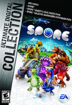 Spore Ultimate Digital Collection includes:1. SPORE2. SPORE GALACTIC ADVENTURES3. SPORE CREEPY AND CUTE Parts PackSPOREBe the architect of your own universe with Spore, an exciting single-player adventure available for download to your PC. Will you be a bloodthirsty carnivore destined to crush your competitors, or a gentle herbivore seeking out stronger allies to enforce your quiet way of life?Experience unparalleled dangers as you hunt for food and struggle to evolve in this thrilling game of strategy and survival. You’ll lay the groundwork for your creature’s future in the Creature design stage of the game: the evolution interface allows you to choose every aspect of your race’s physical shape as well as its social bent and mission in life.Then the real work begins, as you move from basest animalistic needs to those of a social creature with tribes — and eventually a civilization. The choices your tribe makes will align you with one of three social paths for your subjects: religious, commerce, and war-mongering. These decisions will lead your civilization into the far reaches of space, where you must struggle to colonize new planets as other races try to destroy you.Share your creations with your friends at the online Spore site, where you can browse the community and download everything from creatures to spaceships. The more you share, the more unique your worlds will become. Exchange your creations with millions of other players, and marvel at a world of your own making.SPORE GALACTIC ADVENTURESSpore takes off to conquer the universe with the PC download of Spore Galactic Adventures. The fantastic tools from the original Spore now span the galaxy. Teleport landing parties to new environments and interact with civilizations just on the brink of advancement. Complete missions on the planet surface to level your captain, and purchase upgrades for your society, ship, or weaponry. Protect weaker groups to gain their appreciation, loyalty, and sometimes worship.Design your own epic quests with the Adventure Creator, and let your imagination run free with the Planet Creator. Customize entire planets with creatures from your Sporepedia, place and engineer villages, and terraform your atmosphere to suit your collection of creatures. Orchestrate how the world progresses by fine tuning your villagers’ interactions with others. Dig deeper than ever before into the world of a game designer.Share all your hard work with millions of other players at Spore.com. Find exciting new adventures and upload a few of your own. Let your game evolve as you discover new techniques that will keep you coming back to the Spore universe again and again. With Spore Galactic Adventures, the world is literally at your fingertips.SPORE CREEPY AND CUTE Parts PackDownload the Spore Creepy & Cute Parts Pack to your PC and stretch the limits of your imagination. Expand your evolutionary arsenal with more than 100 ways to take your Spore creature designs to the next level. Spend hours in the Creature Creator with increased design options. Invade your Sporepedia with cute and cuddly creatures, or create an evil empire of creepy insectoids or carnivorous monsters to scour your galaxy of life.Once you build your new collection of monsters and cuddly critters, you can “test drive» 24 animations to bring them all to life. Do the robot or the moonwalk, then flirt with a handsome blue thing over yonder. This expansion even features an innovative zombie walk, adding to the humorous, silly aspects of Spore.Share your world with your friends and millions of other Spore enthusiasts through your PC’s Internet connection. Exchange ideas, monsters, vehicles, and more via your Spore online portal. Download more than 150 million creations, and be part of a growing ecosphere at Spore.com. Study the creations of others to learn new tricks and secrets to help design the monsters of your new world. An eye no longer has to be an eye; with the Spore Creepy & Cute Parts Pack, your creativity has no limits.