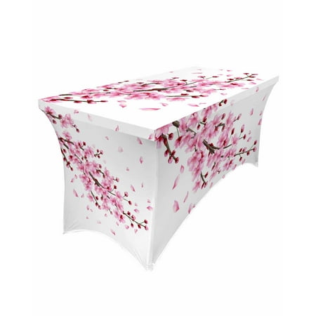 Spring Cherry Blossom Branch Pink Flower Rectangular Elastic Table Skirt Wedding Table Cover Kitchen Dining Table Tablecloth