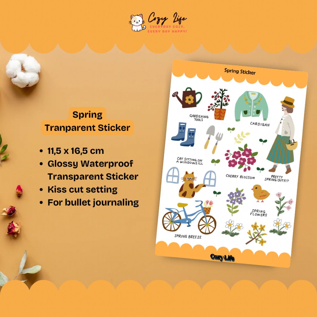 Tambahkan sentuhan musim semi ke jurnal atau dekorasi Anda dengan Spring Transparent Sticker dari Cozy Live! Dengan desain yang hangat dan penuh warna, stiker ini menghadirkan nuansa musim semi yang menyenangkan—dari bunga bermekaran hingga kucing lucu di jendela.