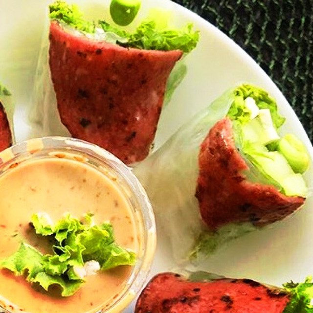 Ini menu buat yang mau diet tapi tetep makan enak,isi nya daun selada,wortel,timun,dan pilihan antara smoke beef atau chicken grill di lapisi kulit lumpia vietnam,enduuul beb ...