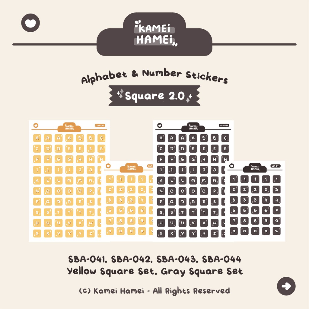 Square Alphanumeric Sticker 2 | Kamei Hamei Functional Planner Sticker