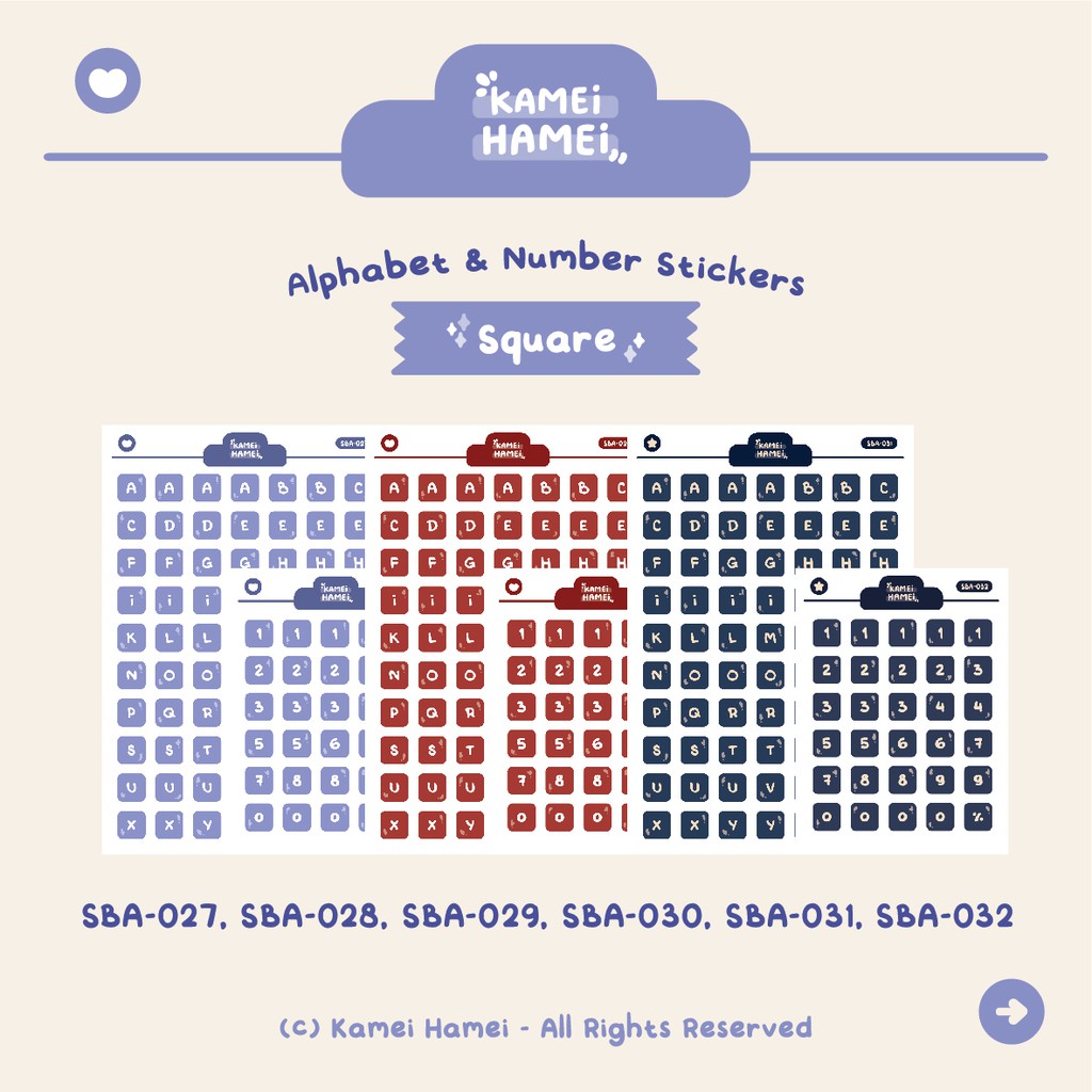 Square Alphanumeric Sticker | Kamei Hamei Functional Planner Sticker