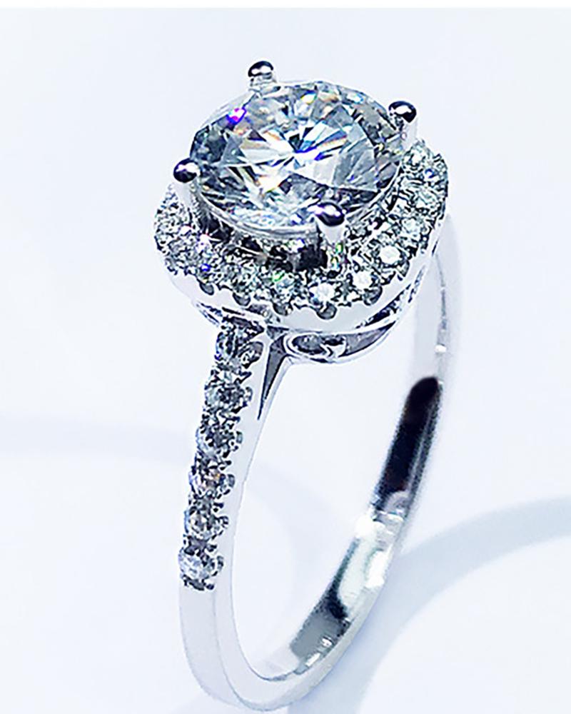 Square Rhinestone Decor Adjustable Stud Rings, Silver