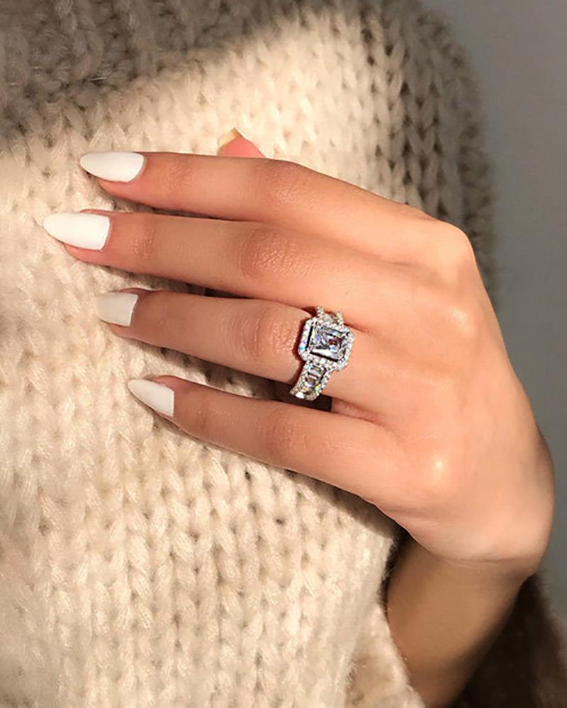 Square Shaped Allover Rhinestone Ring, Silver