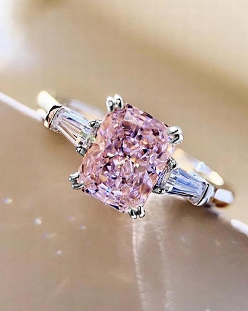 Square Shaped Rhinestone Ring, Pink
