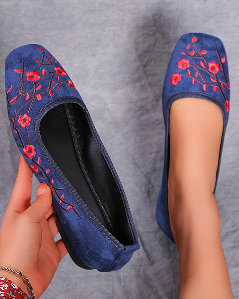 Square Toe National Style Floral Embroidery Slip-on, Blue