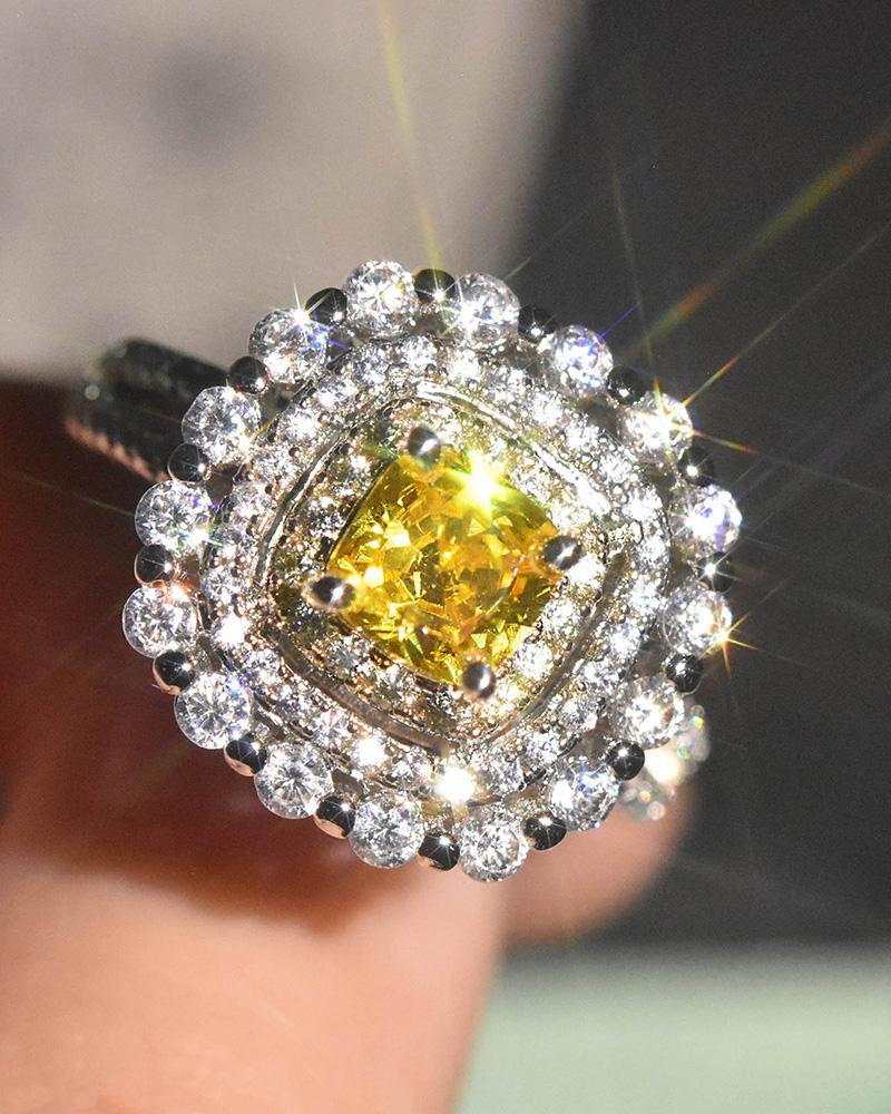 Squared Shaped Rhinestone Pattern Ring, Yellow
