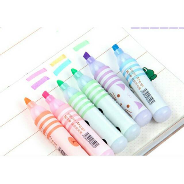 Stabilo set isi 6 warna Animal Farm ini ukuran kecil, mudah dibawa kemanapun. 1 set terditi dari 6 warna: ungu, kuning, orange, hijau, pink, dan biru. Uk panjang stabilo: 7,8cm, lebar 1,5cm.