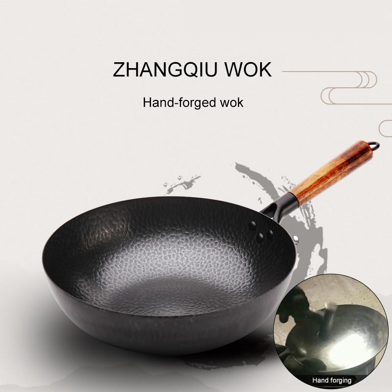 Stainless Cast Iron Pot Hand Forging Non-Stick Uncoated Wok Frying Pan Cookware Kitchen Cooking Pans