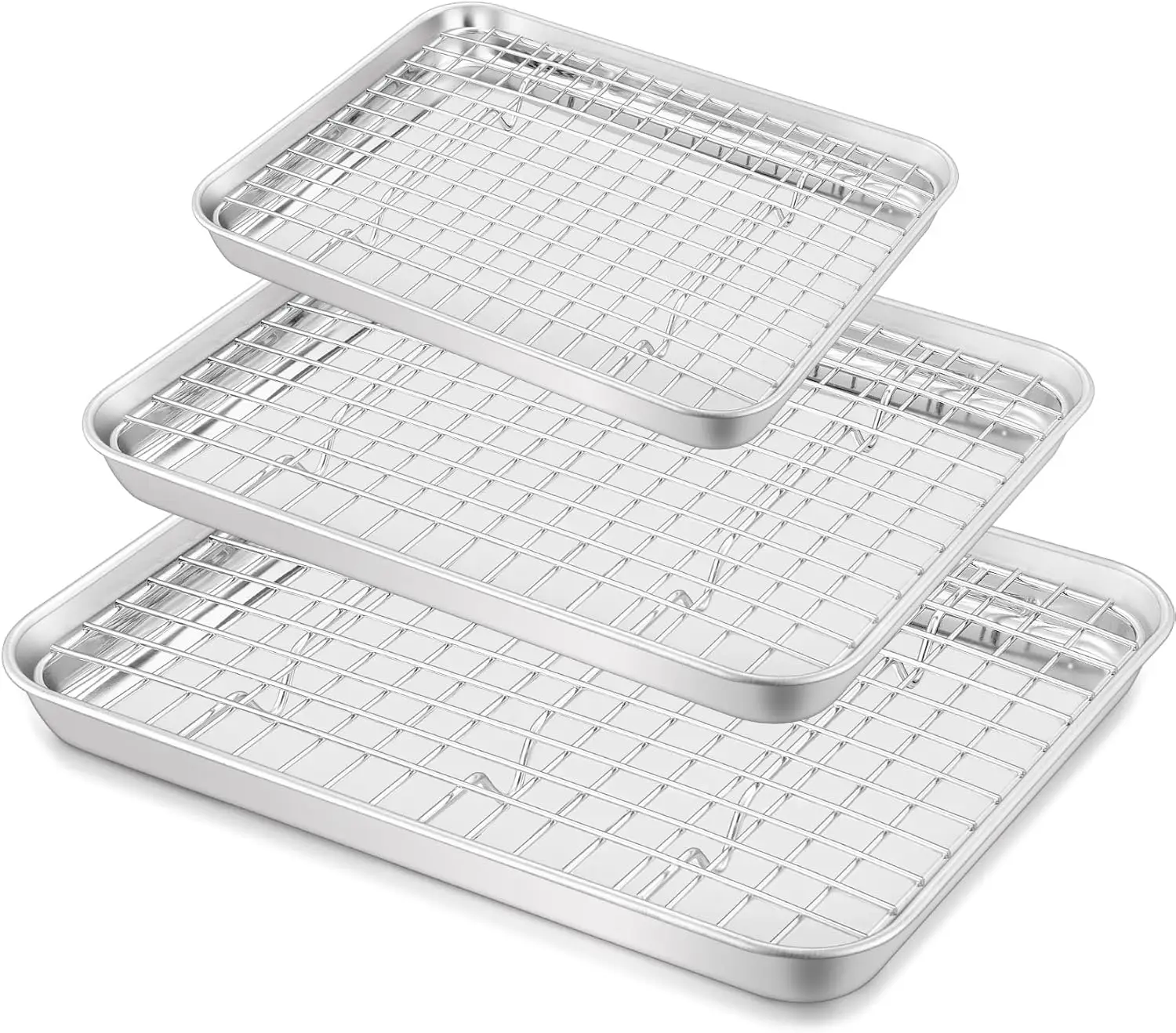 Stainless Steel Baking Sheet with Rack Set, 16/12.5/9 Inch Cookie Sheets Baking Pans and Cooling Racks for Cooking Serv