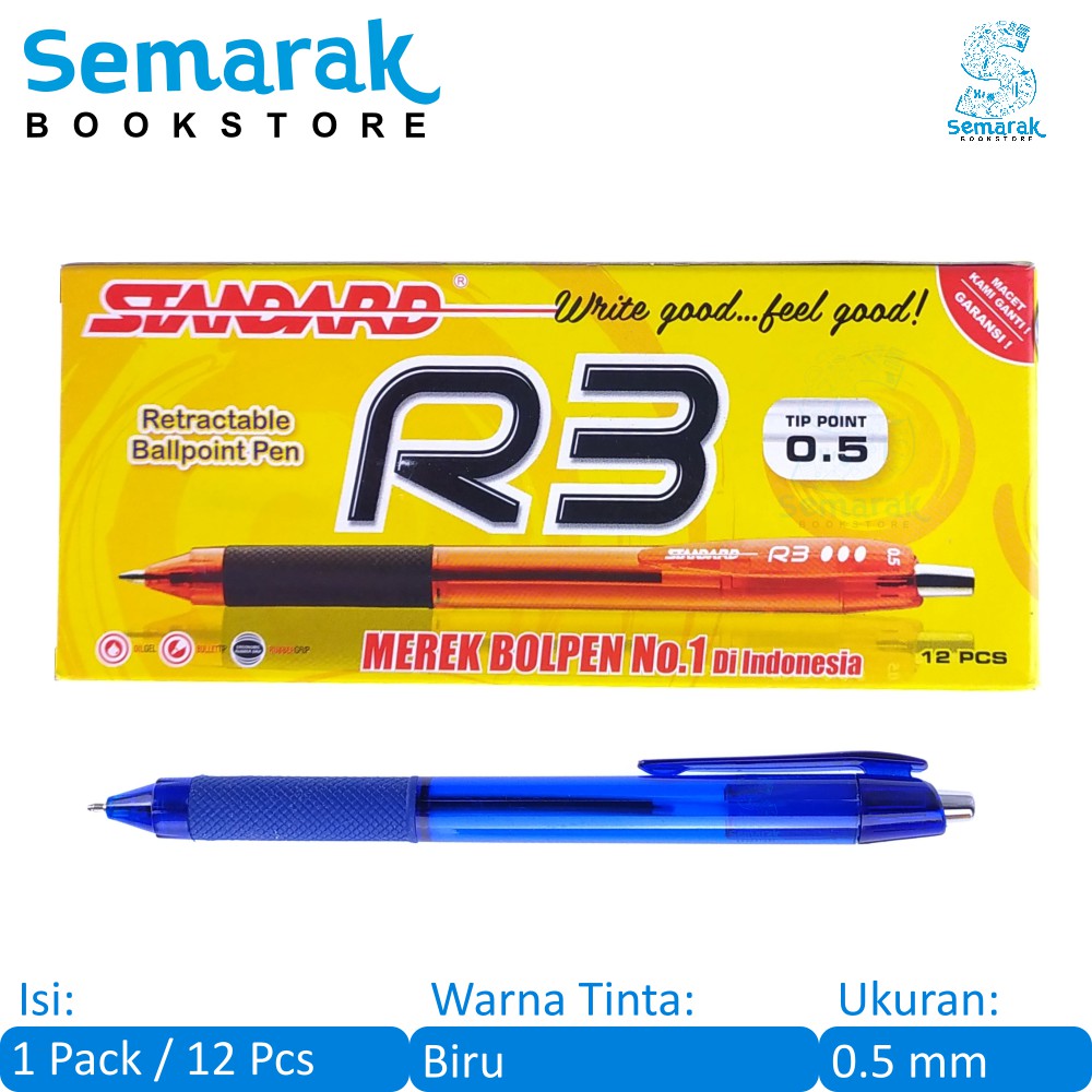Standard R3 Retractable Ballpoint Pen 0.5 - Biru [1 Pack / 12 Pcs]
