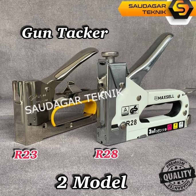 Staples Gun Tacker R23 R25 R28 3 In 1 Stapler Nailer Alat Paku Tembak ASLI