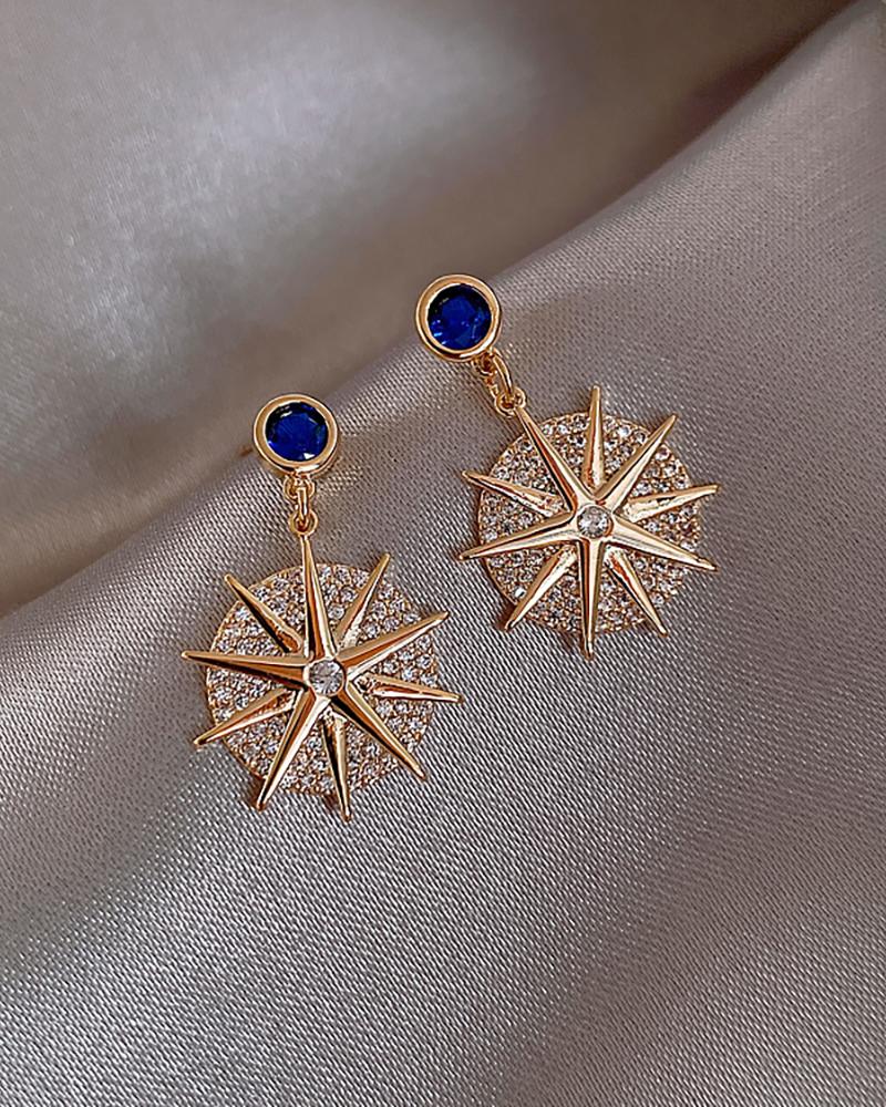 Star Pattern Studded Rhinestone Drop Earrings, Gold